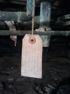 All that was every bit as fun as it sounds. The only interesting thing down there was a tag the phone company put on a cold water line and a scrap of a Korean language newspaper. It's not even that old - someone said it's part of the business section that was printed in 1992.